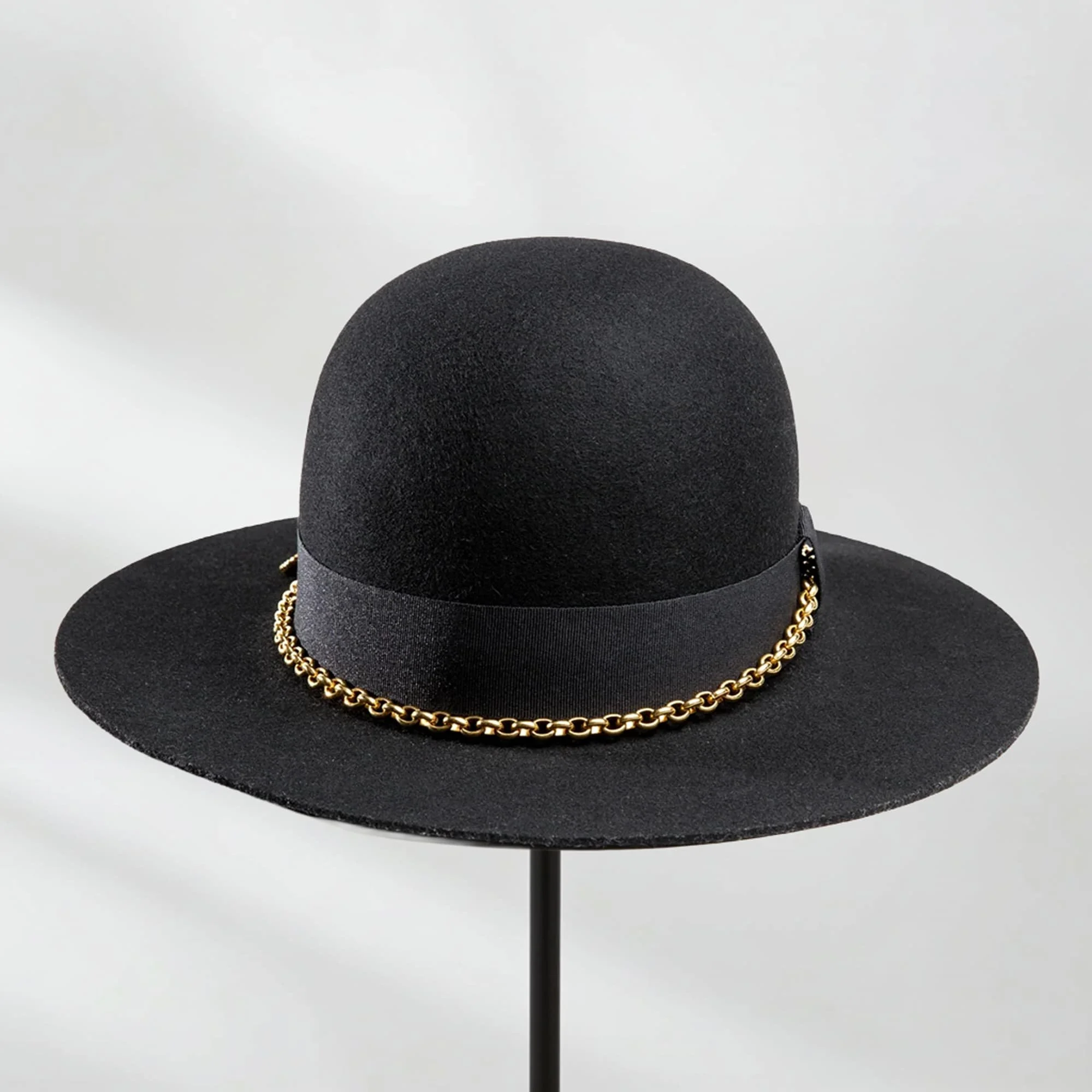 The Marengo is a French-made capeline crafted from 100% wool felt, available in Grey or Black.